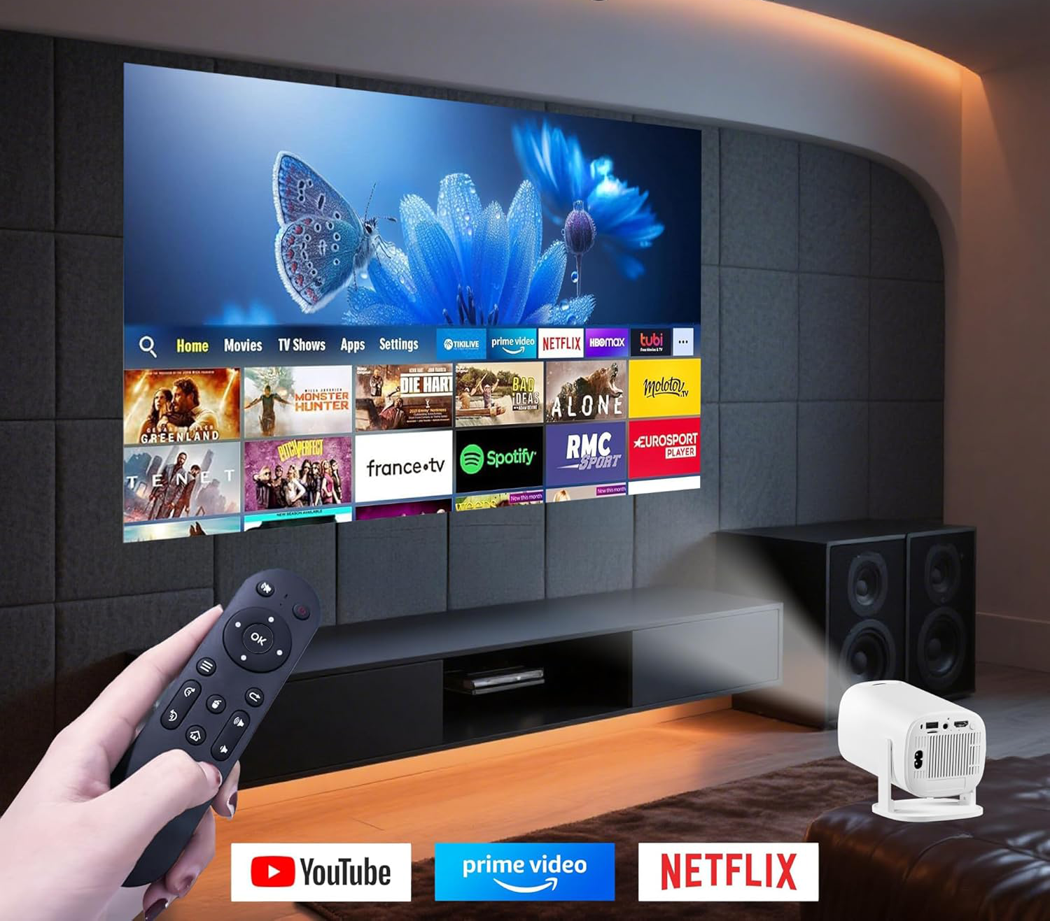 Navigate to the settings menu on the projector's Android interface, select the WiFi option, and choose your network to connect securely. Dual-band support ensures fast and stable links for optimal streaming.